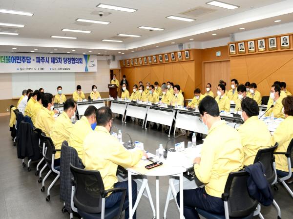 파주시는 7일 파주시청에서 제5차 당정협의회를 열고 코로나 대응 추진 등 지역 현안 및 내년도 국·도비 예산확보를 위한 공조체계 구축에 나섰다고 밝혔다.