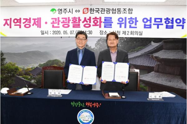 이날 협약식에 참석한 장욱현 영주시장은 “2021영주세계풍기인삼엑스포 성공개최 및 중앙선 복선 완전개통에 따른 영주시가 경북 북부권의 관광메카로 한걸음 나갈 수 있는 그 어느 때 보다 중요하다.”며, “앞으로 두 기관의 연계 협력을 통해 우리시 관광활성화는 물론 상호 발전할 수 있는 계기가 되도록 최선을 다하겠다.”고 말했다.