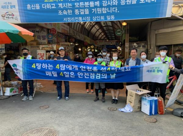 이번 행사는 서정리시장 상인들과 함께 방문하는 시민들에게 손소독제와 코로나19 예방수칙 홍보물을 배부하고 행락철 유선 등 물놀이 안전사고 예방수칙을 안내했다.