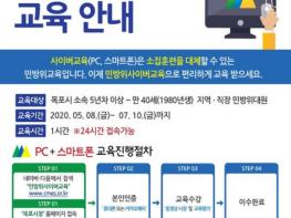 오는 5월 8일부터 7월 10일까지 64일간 실시되는 금년도 사이버 교육은 목포시 소속 5년차 이상 민방위 대원이면 전국 어디에서든 컴퓨터와 스마트폰을 이용해 수강할 수 있다.