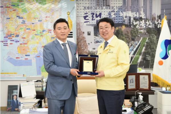 대선주조(주)는 코로나19가 한창 기승을 부릴 때, 방역용 알코올 주조원료 14,860L를 후원하여 전통시장, 관내 주요도로 및 이면도로 등을 방역하는데 크나크 기여를 하였다. 이에 남구는 감사의 마음을 전하고자 감사패를 전달하는 자리를 마련하였다.