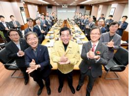 윤 시장은 8일 오전 시청에서 열린 주간정책회의 시작에 앞서 회의에 참석한 간부 공직자들과 ‘덕분에 챌린지’를 함께했다.