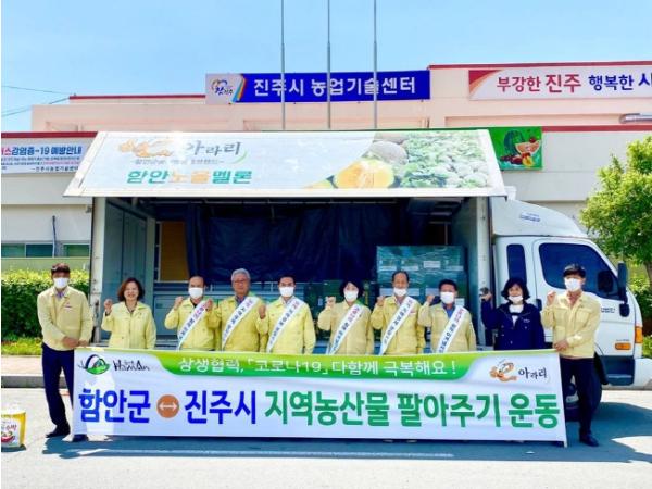 함안군은 코로나19로 침체된 지역 농산물의 소비촉진과 판로개척을 위하여 진주시와 협력을 통해 상호 농산물 사주기 운동을 추진했다.