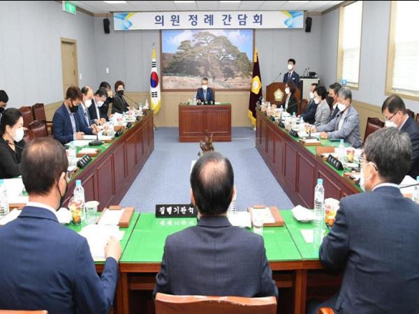 석만진의장은 인사말에서 “지난 6일부터 코로나19 대응단계가 생활 속 거리두기로 전환되었지만 모임이나 외출 등 일상생활 속 거리두기와 방역지침 준수가 군민들 사이에 정착되어 코로나19로부터 군민들의 생명과 안전을 지키는데 한 치의 소홀함이 없도록 해달라”고 당부했다.