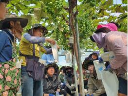 이번 봉사활동의 대강면의 포도농가로 1월가온농가는 지금 봉지씌우기와 알솎기를 해야 하는데 일손이 많이 부족한 것이 현실이다. 농업기술센터 직원 30여명이 포도농가 생육기에따른 간단한 이론교육도 받고, 봉지씌우기를 직접하면서 농촌의 일손도 돕고 지도능력또한 배양하는 뜻깊은 시간이 되었다.
