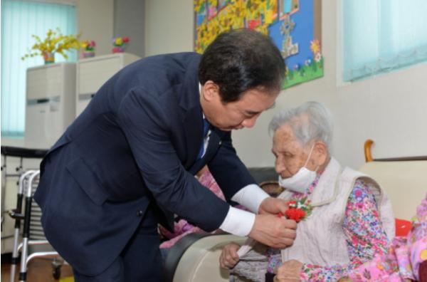 박윤국 포천시장은 5월 가정의 달을 맞아 어버이날을 앞둔 7일 ‘처음처럼 노인주간보호센터’와 ‘은빛효사랑 주간보호센터’를 방문하여 종사자들과 입소자들을 격려하고 어르신들에게 위문품을 전달하며 감사와 존경의 마음을 전했다.