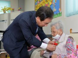 시는 코로나19 영향으로 가정의 달 대표적인 행사인 어린이날과 어버이날 기념행사가 취소되고, 사회적 거리두기로 가족을 만나지 못해 소외될 수 있는 시설 어르신들을 위로하기 위해 이번 방문을 마련했다.