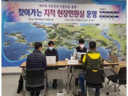 찾아가는 지적 현장민원실은 대부동 주민들의 구청 방문에 따른 원거리 이동 불편을 해소하고 시간·경제적 부담을 절감하기 위해 구가 지난 3월부터 대부해양본부에 설치해 운영하고 있다.