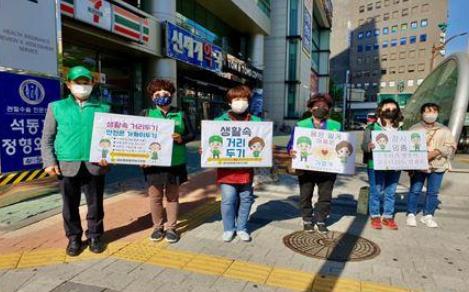 새마을운동 연제구지회(회장 박기태)는 생활방역 시행 첫날인 5월 6일 부터 연산교차로 일대에서 ‘생활 속 거리두기’ 실천 캠페인을 실시했다.