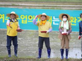 이날 모내기 행사는 권오봉 여수시장, 농협중앙회여수시지부장 및 지역 농협조합장과 농업인 단체 대표 등 친환경 농업인 60여 명이 참석했다.?
