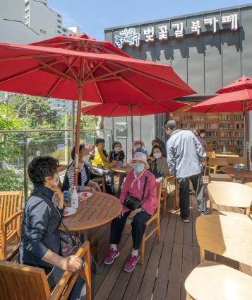 중랑천 장평교 주변에 위치한 벚꽃길 북카페는 바쁜 도시 생활 속에서 여유를 즐기고자 하는 구민들이 중랑천변에서 내 집 서재와 같이 편안하게 차 한 잔과 독서를 즐길 수 있도록 조성됐다.