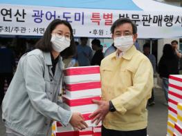 매년 5월이면 개최되는 자연산 광어·도미 축제가 코로나19의 여파로 취소되어 서천군이 광어·도미 소비 촉진을 위한 특판행사를 개최한 가운데, 노박래 서천군수가 행사에 참여해 직접 구매 독려에 나섰다.