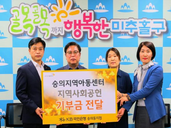 KB국민은행 숭의동지점이 인천 미추홀구(구청장 김정식) 숭의지역아동센터에 후원금을 전달했다.