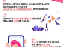 ‘#너의플레이를응원해 이벤트’는 응원하는 선수에게 메시지를 보내고, 선수가 직접 최고의 응원 메시지 1개를 뽑아 해당 메시지를 작성한 참여자에게 사인볼을 지급하는 이벤트다. 선수들 중 가장 많은 응원 메시지를 받은 선수는 본 대회 기간 중 KLPGA의 공식 인스타그램의 라이브 방송을 통해 팬과 직접 소통하는 시간을 갖게 된다.