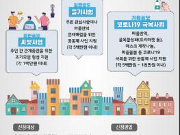 이번 2020년 유성매직 마을공동체 추가 공모는 ‘초기모임 형성을 지원하는 씨앗사업’, ‘마을안의 문제를 해결하고 공동체를 활성화하는 줄기사업’, ‘마을방역, 골목활성화(프리마켓 등), 마스크 제작나눔, 마을돌봄 등 코로나19 극복을 위한 기획공모’ 총 3개 분야에서 11개 마을공동체 사업을 모집할 예정이다.