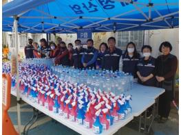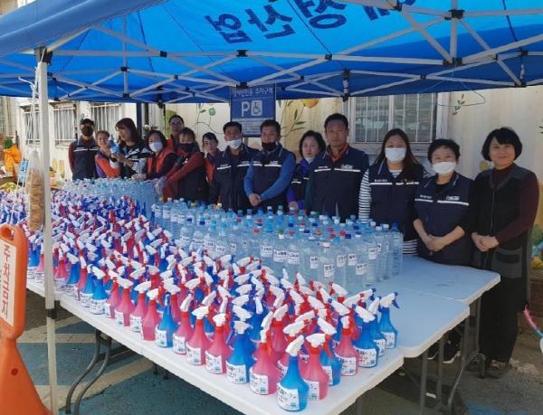 해성산업(대표 오승석)은 2020년 4월 1일부터 신현동 관내 일반 사업체를 대상으로 예방수칙이 담긴 인쇄물을 부착한 휴대용 소독 분무기 5500개와 소독제가 담긴 재활용 페트병(1.8ℓ)을 나눠주는 코로나19 예방 캠페인을 진행했다. 아울러, 코로나19가 장기화될 것에 대비해 일상을 유지하면서도 실천할 수 있는 생활 방역 체계의 일환으로 ‘내 손으로 직접 내 일터를 소독’하는 자체 방역에 적극적으로 동참해 줄 것을 호소했다.