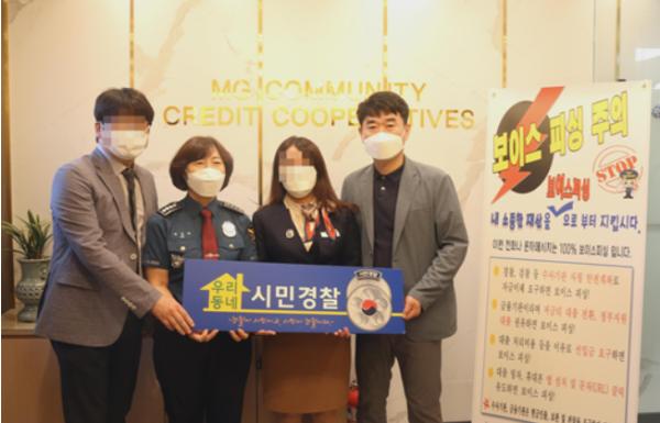 부천소사경찰서(서장 이경자)는 8일 보이스피싱 피의자를 검거하는데 결정적인 역할을 한 부천 새마을금고 남부지점 은행원 A씨에게 표창장을 전달하고 2020년도 ‘우리동네 시민경찰’ 3호로 선정했다.