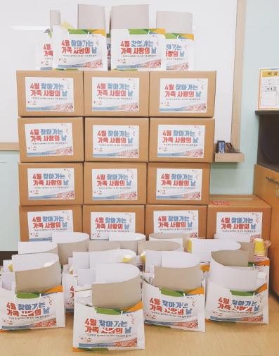 놀이용품 키트 ‘두근두근 놀이박스’는 아이들이 창의력을 발휘하고 집중력을 높일 수 있는 다양한 창작놀이 재료들로 구성됐다. 개운죽?잔디인형 키우기, 비누클레이 만들기 등 가족이 함께 체험하고 관찰할 수 있는 물품들이 담겨있다.