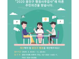 광진구의회(의장 고양석)가 2020년도 행정사무감사(6월4일~6월12일)를 앞두고 구 행정 발전에 밑거름이 될 수 있는 주민의견을 받는다.