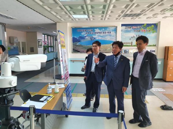 표병호 위원장은 열화상 카메라 설치, 교실 책상 재배치, 식당 칸막이 설치, 마스크 비축 등 방역 준비 상황을 살피고, 등교개학에 대비한 학교자체 코로나 예방대책을 청취하였다.