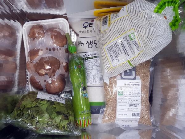 농산물 꾸러미는 안동시 학교급식 실무협의회를 통해 선정된 곡류, 채소류, 과일류 등 성장기에 좋은 농산물 혼합 꾸러미로 1인당 3만 원 상당으로 구성됐다.