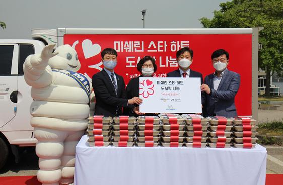 지난 11일(월) 시는 문미란 서울시 정무부시장, 이주행 미쉐린코리아(주) 대표, 김현훈 서울특별시사회복지협의회 회장이 참석한 가운데 ‘미쉐린 스타 하트 도시락 전달식’(잠원 한강공원)을 진행했다.