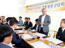 전주시에 따르면 문 위원장은 12일 전주시를 방문해 ‘해고 없는 도시 전주 상생협력’과 관련 현장의 목소리를 청취하기 위한 간담회를 가졌다. 이날 간담회에는 김승수 전주시장과 문성현 대통령 소속 경제사회노동위원장, 김영규 고용노동부 전주지청장, 안남우 전북중소벤처기업청장, 임동욱 중소기업인연합회장 등 지역의 기업계, 노동계, 학계 전문가들이 참석했다.
