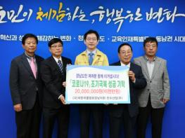 (사)대한곡물협회경남도지회(지회장 김승주)와 진수산업(주)(대표 박영식)이 코로나19 조기 극복을 위해 써 달라며 각 1000만 원씩 총 2000만 원을 경상남도(도지사 김경수)에 4월 3일 전달했다.