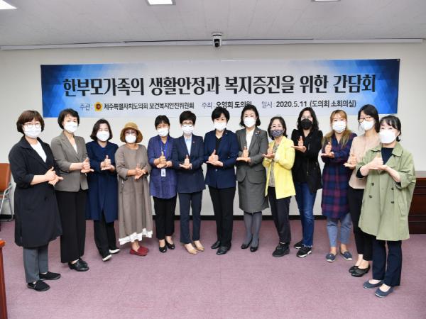 ‘한부모가족의 날’을 맞이하여 제주특별자치도의회 보건복지안전위원회(위원장 고태순) 주최 오영희의원실(미래통합당, 바른미래당) 주관으로 『한부모가족의 생활안정과 복지증진을 위한 간담회』를 2020년 5월11일(월) 14:00 제주특별자치도의회 소회의실에서 실시 했다.
