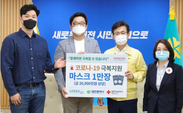 대전지역 마스크업체인 ㈜레스텍이 대전시에 방역마스크 1만 개를 기탁했다.
