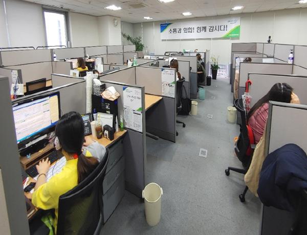 콜센터는 좌석 간격이 좁은 데다가 업무 특성 탓에 감염에 매우 취약한 환경에 놓여 있으며, 직장 내 확진자 발생 시 곧장 집단 감염으로 이어질 수 있다.