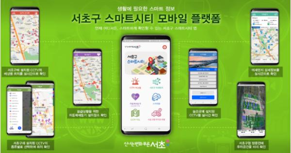 ‘서초 스마트 시티’는 사용자들에게 사물인터넷(IoT), 블루투스 비콘(근거리 무선통신 기술) 센서를 기반으로 ▲미세먼지, 온·습도 등 생활 환경정보, ▲CCTV 및 비상벨 위치, ▲AED(자동제세동기) 위치 등 방범·편의시설관련 다양한 정보를 제공하는 앱이다.