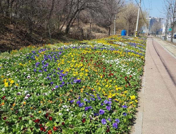속초시가 싱그러운 봄을 맞이해 시민들과 시를 찾는 많은 관광객을 위해, 시 관문을 비롯한 주요 도로변 40개소에 팬지 등 봄꽃 33만본을 식재했다.