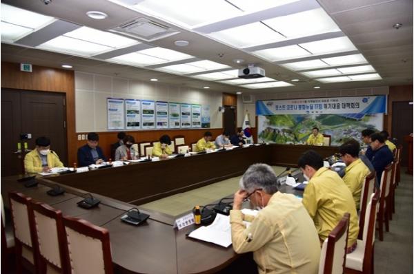 봉화군(군수 엄태항)은 유례없이 닥친 코로나19 위기를 조기 극복하고 향후 급변하는 환경에 선제 대응하기 위해 5월 12일(화) 오후3시 30분군청 소회의실에서 『포스트 코로나 봉화뉴딜 TF팀』 위기대응 대책회의를 개최했다.