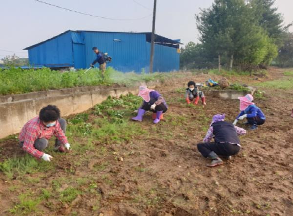 코로나19가 장기화되고 있는 가운데 이날 마을 주민 모두는 마스크를 착용하고 2미터 거리를 두고 작업에 임하는 등 생활 속 거리두기를 실천해 가면서 꽃밭을 정비했다.