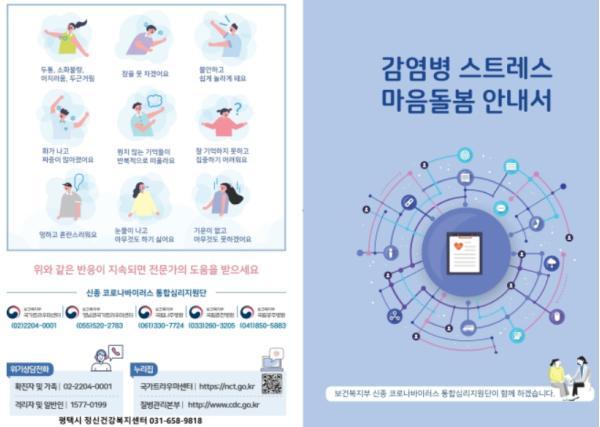 심리지원은 확진자와 가족, 격리자들의 심리적 안정과 일상생활 복귀를 돕고, 감염병에 대한 일반인들의 과도한 불안과 스트레스를 예방하기 위해 심리적 방역 리플렛 배포, 문자 발송, 전화 상담을 제공하고 있다.