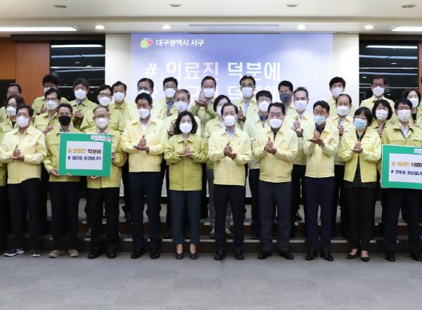 대구 서구청(구청장 류한국)은 12일 코로나19 극복을 위해 헌신한 의료진에게 감사의 뜻을 전하는‘덕분에 챌린지’캠페인에 동참했다.
