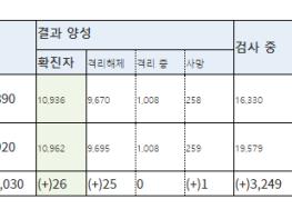 질병관리본부 중앙방역대책본부(본부장 정은경)는 5월 13일 0시 현재, 신규 확진자가 26명 발생하여 총 누적 확진자수는 10,962명(해외유입 1,142명(내국인 90.2%))이라고 밝혔다. 신규 격리해제자는 25명으로 총 9,695명(88.4%)이 격리해제 되어, 현재 1,008명이 격리 중이다.