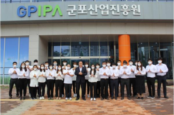 “군포산업진흥원 임직원들이 대한민국 의료진께 응원의 인사를 전합니다.”
