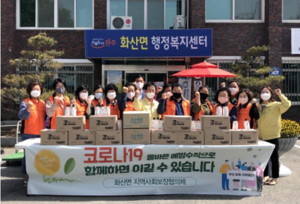 또한 파출소·소방서·농협·우체국 등 관공서와 화산지역아동센터, 화산어린이집에도 손소독제를 전달해 안전한 기관 및 시설 이용을 당부했다.