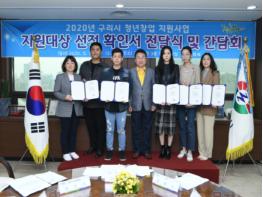 구리시(시장 안승남)는 지난 12일‘2020년 구리시 청년창업 지원사업’에 선발된 청년 예비창업자 5팀에 지원대상 선정 확인서 전달식 및 간담회를 가졌다.
