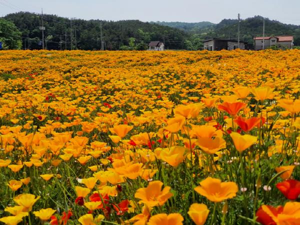 드라이브로도 즐길 수 있는 천북면 물천리 꽃길은 금영화 외에도 수레국화, 꽃양귀비, 사계장미 등 다양한 꽃들이 아름다운 모습으로 코로나19에 지친 시민들을 응원하고 있다.