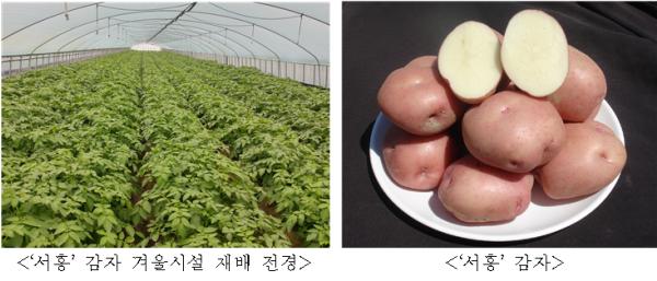 ‘서홍’은 시설 내부의 기온 변화에 잘 적응하고 더뎅이병 발병도가 5.2%로 낮아 병에 매우 강하며 수량이 ‘수미’보다 30∼40% 많은 우수한 품종이다.
