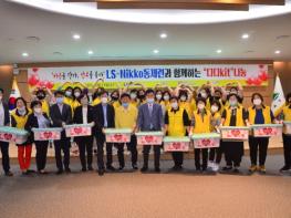 울주군 저소득·결손 가정 아동들에게 희망의 메시지를 전하는「마음을 담다, 안부를 묻다’ LS-Nikko동제련과 함께하는‘다다kit’ 나눔」행사가 13일 울주군청 문수홀에서 열렸다.