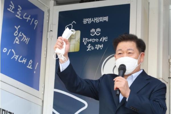 광명시는 코로나19로 침체된 지역경제를 살리고자 시민 1명당 광명·경기도 재난기본소득 15만원 지급, 소상공인·택시 운수종사자 민생안정자금 50만원 지급, 확진자 방문 휴업 소상공인 임시휴업 보상금 최대 200만원 지원 등 다양한 지원 정책을 마련해 추진하고 있다. 또 7월까지 광명사랑화폐 충전하면 금액의 10%를 추가 혜택으로 드리고, 한도액도 40만 원에서 100만원까지 늘리기로 했다.