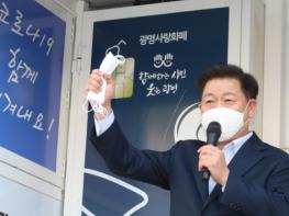 광명시가 13일 코로나19로 침체한 지역경제에 활력을 불어넣고 시민에게 코로나19 극복 희망의 메시지를 전하기 위한 이색 응원전을 했다.