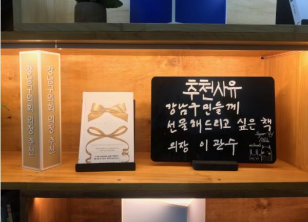 강남구의회 이관수 의장은 의회청사 1층 로비 북카페 조성을 기념하여 구민들에게 권하고 싶은 추천도서로 ‘행복과 성공’이라는 인생최대의 명제에 답하는 ‘선물’을 소개하고 싶다고 했다.