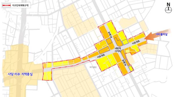 이번 지구단위계획은 내방역 일대를 방배 생활권을 지원하는 근린 중심지로 육성하고, 생활 SOC를 구축하는 계획을 담아 자족 기능을 갖추는 데 중점을 두었다.