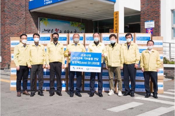 한국환경공단은 경북 내 시·군 가운데 특별재난지역으로 선정되지 않은 지역을 중심으로 방호복을 기부하였으며 구미시 외에도 안동시·의성군·성주군이 기부대상에 포함되었다. 이번 기부 외에도 공단은 임직원 성금·마스크 등으로 지금까지 꾸준히 기부활동을 전개하고 있다.