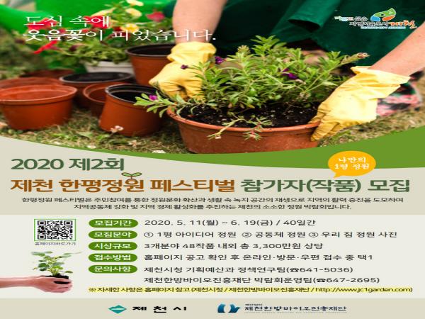 제천시는 ‘2020 제2회 제천 한평정원 페스티벌’의 출품작을 6월 19일(금)까지 접수한다고 밝혔다.
